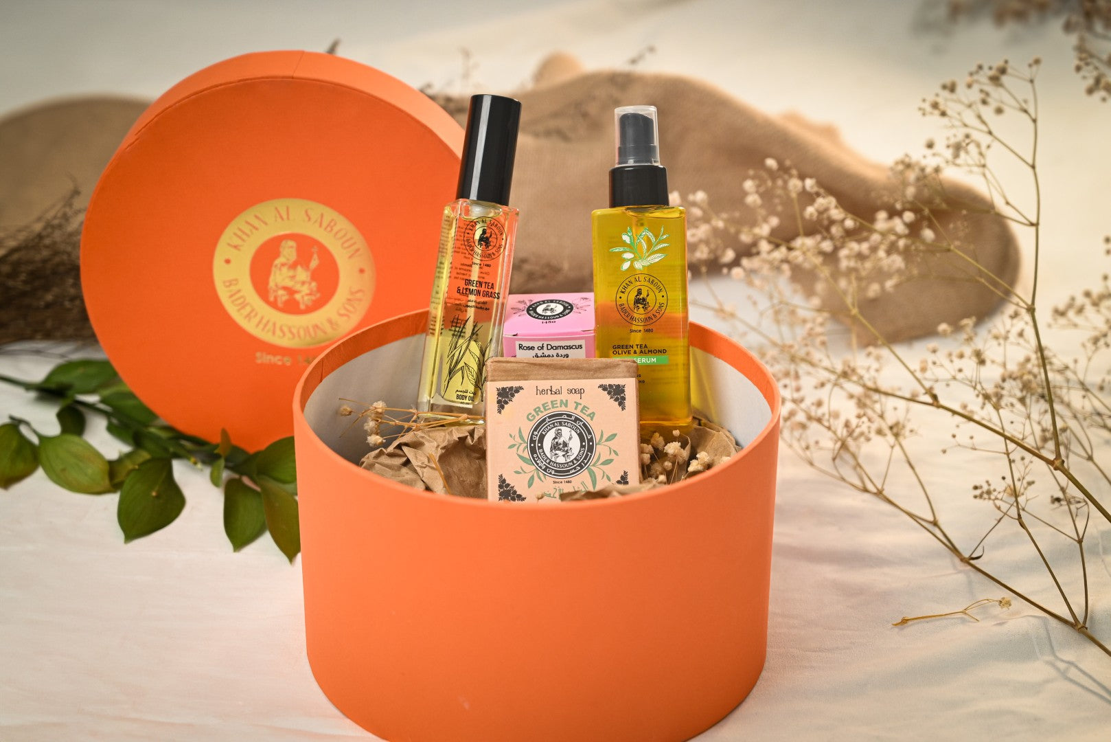 Elegant Medium round gift box, perfect for corporate gifting or Christmas presents. This luxurious packaging adds a touch of sophistication, with products that leave a lasting, captivating fragrance. Ideal for presenting premium skincare or personalized gifts.